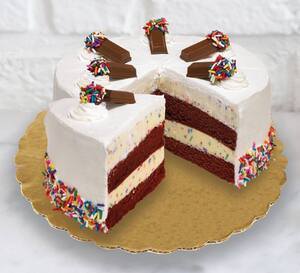 Please check with your local store for availability. Cake batter ice cream mixed with rainbow sprinkles, brownies and fudge. Whether it's a promotion, a birthday, or even welcoming a new hire, nothing makes work more fun than cake and ice cream.