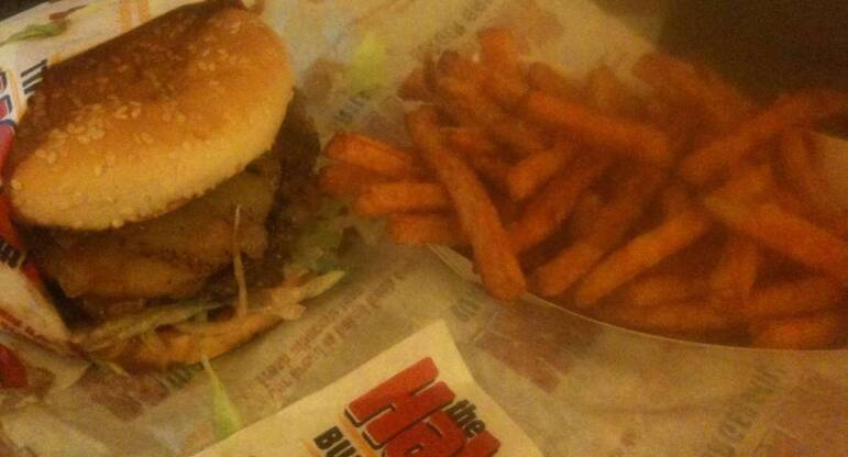 Two grilled chicken sandwiches, two charburgers with cheese, two onion rings, two french fries, and an entrée garden salad. Nor is it really fast food; Order delivery and pickup on the go.